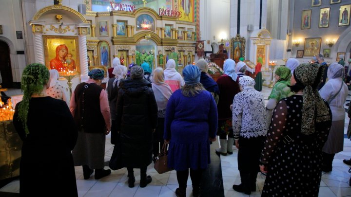 Татьяна - прихожанка храма: Затем они двигаются в сам алтарь, ставят на жертвенники все дары и ждут сошествие святого духа на эти дары. Это подготовка к таинству причастия, служба идёт архиерейская. Сегодня у нас праздник — это очень великий чин и наш храм носит статус собора, и это такое великое таинство происходит именно в нашем храме сегодня в честь праздника преподобного Серафима Саровского.