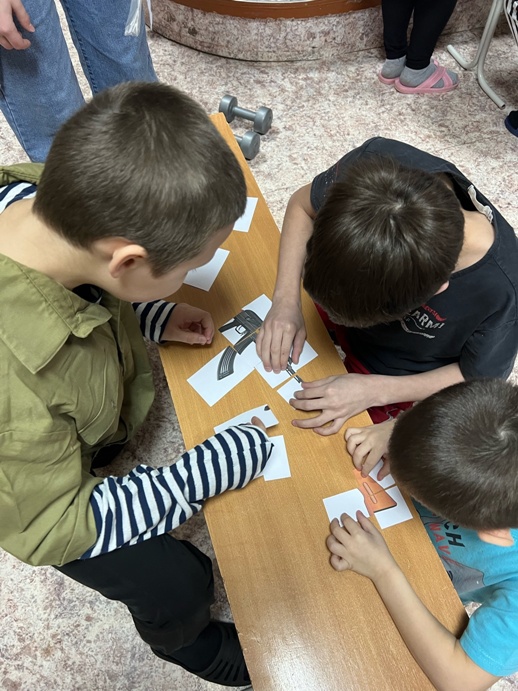 Кроме того ребята продемонстрировали навыки сборки нарисованных частей автомата, умение точно из него стрелять и, конечно, поделились, своими теоретическими знаниями об использовании оружия.