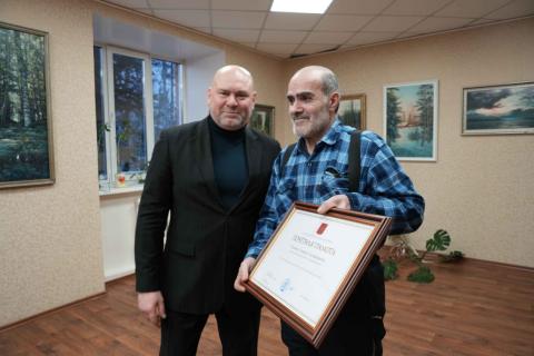 Глава Туруханского района Олег Шереметьев вручил награду Хачику Унаняну