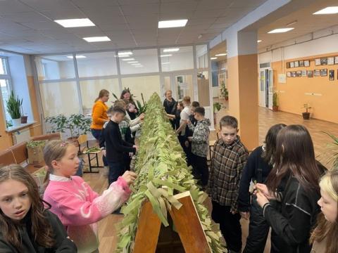 В рамках акции «Своих не бросаем!», ученики 5 классов приняли участие в плетении маскировочных сетей для участников СВО.