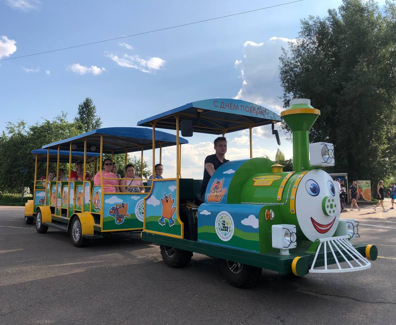 В Красноярске на острове Татышев запущен маршрут до игровой зоны. Детей и взрослых будет возить паровозик.