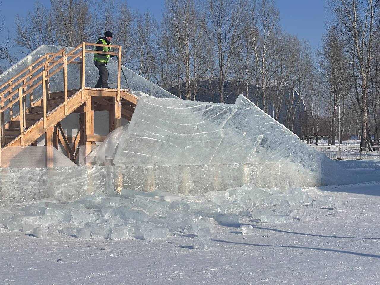 В красноярском Татышев-парке разбирают ледовый городок Фото: Татышев-парк Завершил свою работу ледовый городок возле главной ёлки Красноярска на острове Татышев.